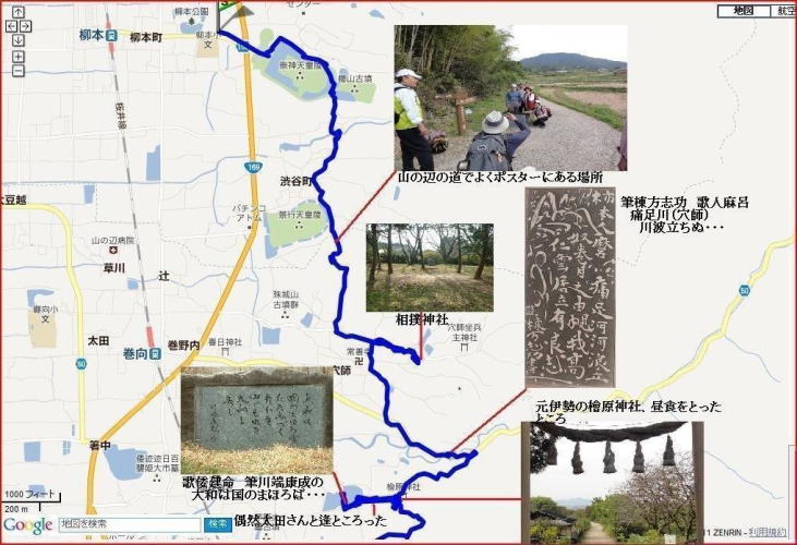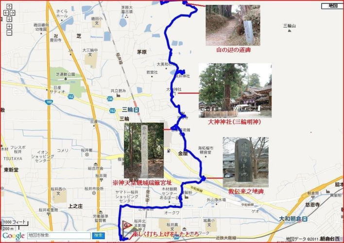 一昨日の山の辺の道後半(柳本駅から桜井駅)のコース実績を送信します。