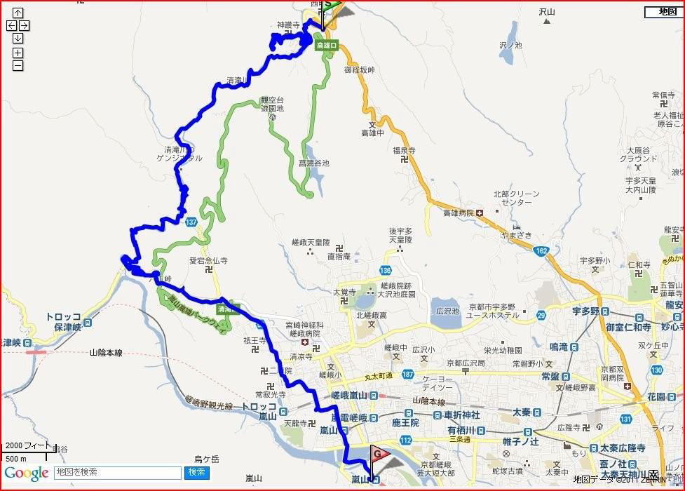 コース バス山城高雄〜神護寺(参拝)〜清滝橋〜猿渡峠〜鳥居本〜阪急嵐山