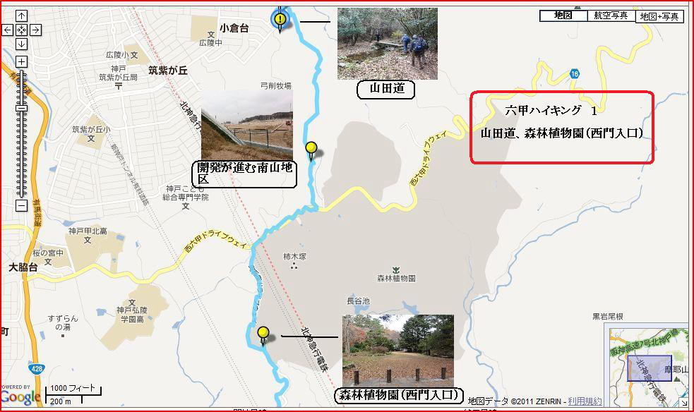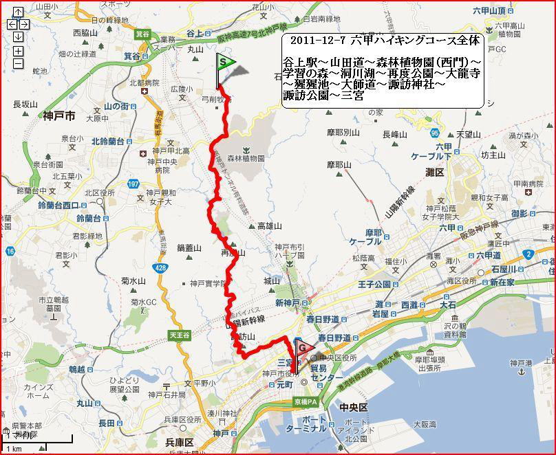 同好会ハイキング 2011-12-07 六甲山田道〜県庁前