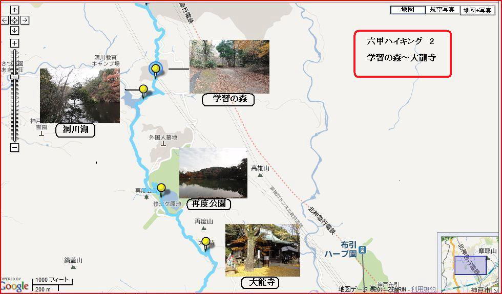 コース:谷上駅スタート⇒山田道⇒森林植物園(西門入口)⇒学習の森⇒洞川湖〜再度公園(食事)