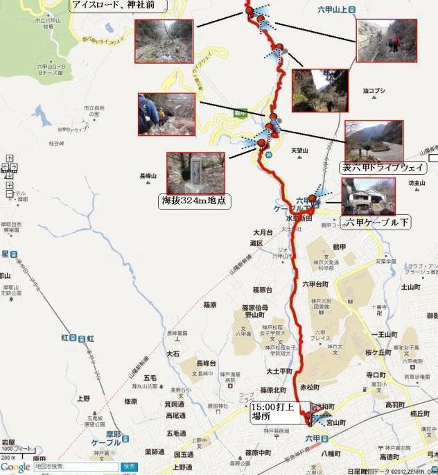 アイスロード→六甲ケーブル下→打上(15時)→阪急六甲