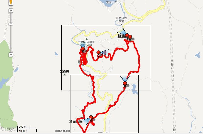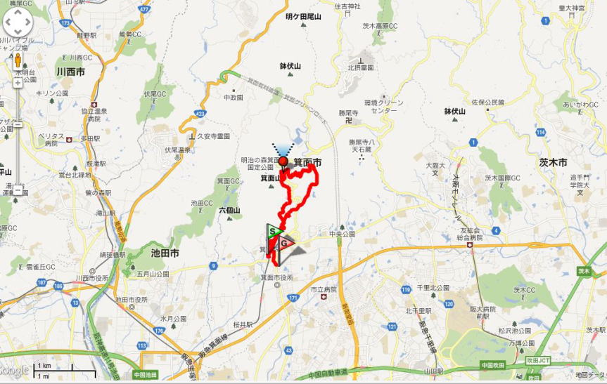 コース 箕面駅→紅葉橋→望海展望台→こもれび展望台→雲隣展望台→箕面大滝→龍安寺→箕面駅13:35ゴール