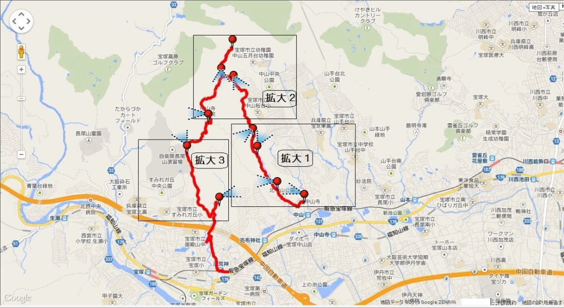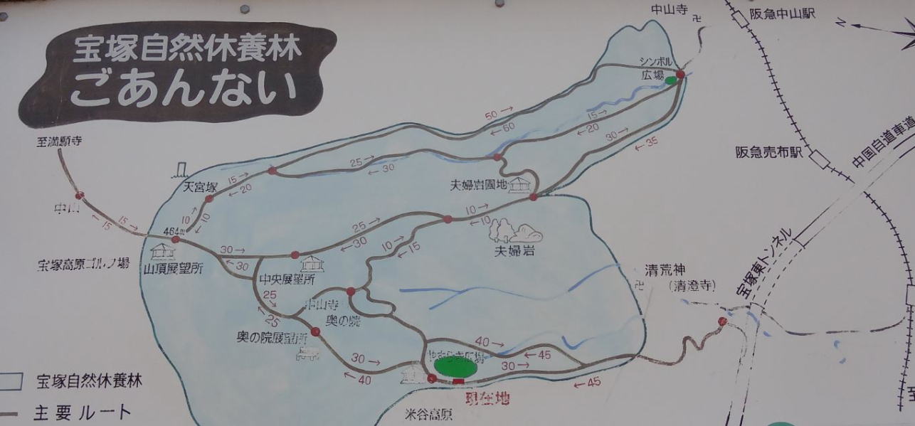 コース 中山駅〜中山寺〜中山山頂〜奥の院〜清荒神〜打上(15:00)〜清荒神駅